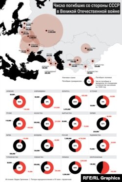 По последним оценкам, за годы Второй мировой войны (1939-1945) погибли более 50 миллионов человек, в том числе 27 миллионов граждан СССР.