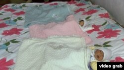 30-летняя Эльмира Сулайманкулова после рождения тройняшек получила от властей звание матери-героини и премию в 3 тысячи сомов (около 45 долларов)