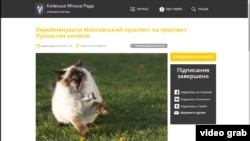 Одновременно с появлением петиции о переименовании проспекта на сайте мэрии появились десятки обращений от киевлян с вариантами новых названий: например, Троещинский, Киевский или проспект Владимира Великого. Но один из самых популярных вариантов на данный момент (он набрал уже более половины минимального количества голосов, необходимых для рассмотрения) — предложение назвать проспект в честь пушистых котиков.