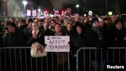 В Нью-Йорке в день инаугурации избранного президента Дональда Трампа прошел массовый митинг протеста под лозунгом WeStandUnited. Акцию возглавил лично мэр города Билл де Блазио, в ней также участвовали голливудские звезды Роберт Де Ниро, Марк Руффало, Алекс Болдуин (он играет пародию на Трампа в еженедельном телешоу), режиссер Майкл Мур и певица Шер. Все они представляют Демократическую партию США, чей кандидат Хиллари Клинтон проиграла Трампу на прошедших выборах президента.