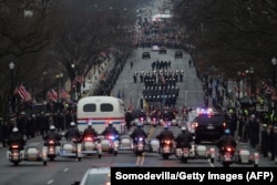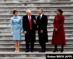 Барак и Мишель Обама вылетели на вертолете на военную базу под Вашингтоном, откуда они отправятся на самолете в Палм-Спрингс. Бывший вице-президент Джо Байден и его супруга отбыли из Вашингтона на лимузине.