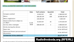 Согласно данным, которые прислала "Схемам" администрация ресторана, празднование было рассчитано на 100 гостей. Стоимость питания и обслуживание официантов составила 23 тысячи 175 швейцарских франков. Лицо, на чье имя заказывали праздник, имело такую же фамилию, что и сестра Коломойского.