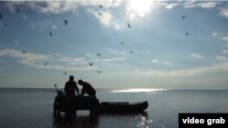 Наступает новый день, и Магомед снова везет свою надувную лодку на мотоцикле Абдулы к мелким водам Каспийского моря. Нужно пройти сотню метров пешком, прежде чем сядешь в лодку. "Ну да, я понимаю, сейчас солнце вышло – интерес, радость будет, а в 4 часа утром вставать, тем более осенью, рано весной, когда морозы – никакого интереса нету, это безвыходность получается", – жалуется рыбак.