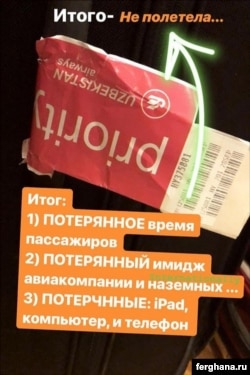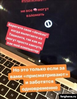 На второй фотографии написано: "Не все могут взломать. Берегите свои "devices" когда вылетаете из Ташкента, так как их могут просто хакнуть как мой компьютер. Но это только если за вами "присматривают" и заботятся одновременно" [орфография и пунктуация тут и далее сохранены].