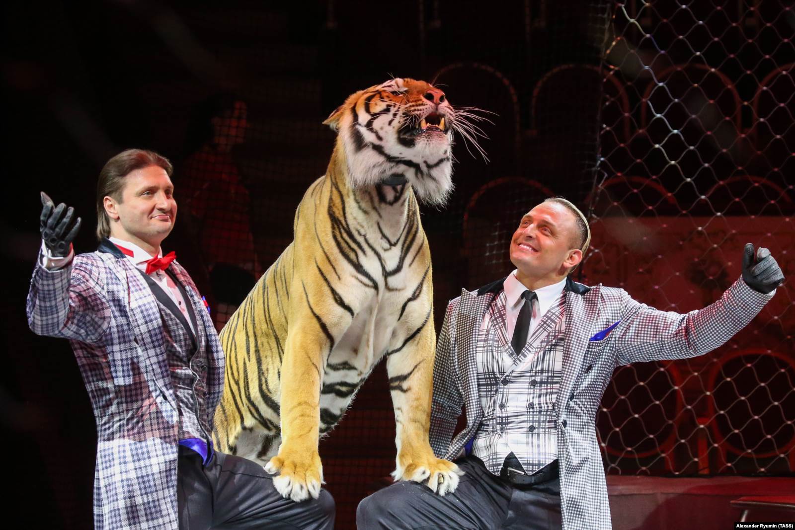 У "Виты" есть видеозапись разговора с Вадимом Канбеговым, руководителем цирка-шапито "Максимус" и дрессировщиком тигров. В коротком ролике Канбегов уверяет зоозащитников, что "цирки в России будут всегда". И у него на это свои доводы: "Пока братья в "Единой России" сидят – нормально", – говорит Канбегов.