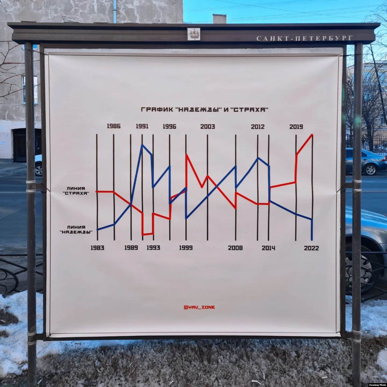 У нас был где-то недельный затык, когда мы решили отреагировать на происходящее через искусство: мы много думали и пытались какие-то идеи из себя выдавить – ничего не получалось. Потом придумали работу "График "Надежды" и "Страха"" – продление графика Ильи Кабакова. С того момента у нас пошло много антивоенных идей – мы даже все не успеваем осуществлять, или нам не хватает ресурсов.