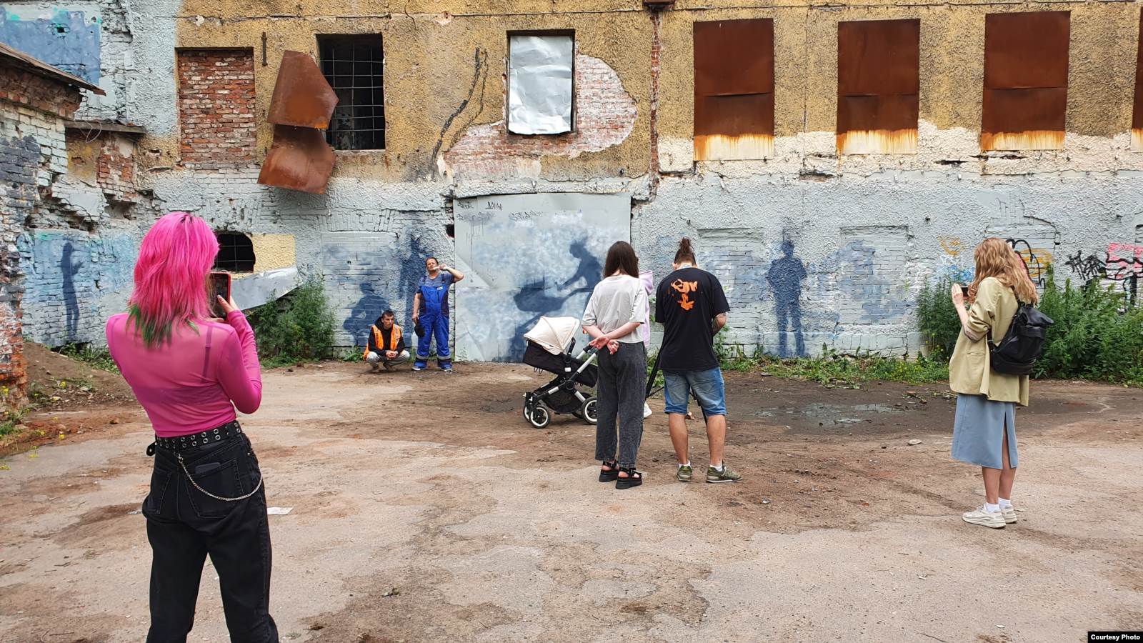 — Поиск подходящего нам для этого перформанса здания занял где-то месяц. Его нашла я, хотя сама нахожусь не в Петербурге: гуляла по городу по Google Maps через "Просмотр улиц" в поиске подходящей стены. Нам была нужна заброшка без толп любителей по ним поползать и без граффитистов, расположенная не в Ленобласти, а относительно в центре, чтобы люди могли до нашей работы дойти. И стены были исписаны еще до нас – мы специально не портили чистую стену, чтобы нас было сложнее привлечь к юридической ответственности.
